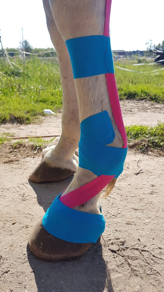 Taśmy po naklejeniu na skórę/ sierść powodują uniesienie sierści wraz ze skórą co pozwala na zwiększenie przestrzeni pomiędzy skórą, powięzią i mięśniami co wpływa na zmniejszenie napięcia i nacisku.